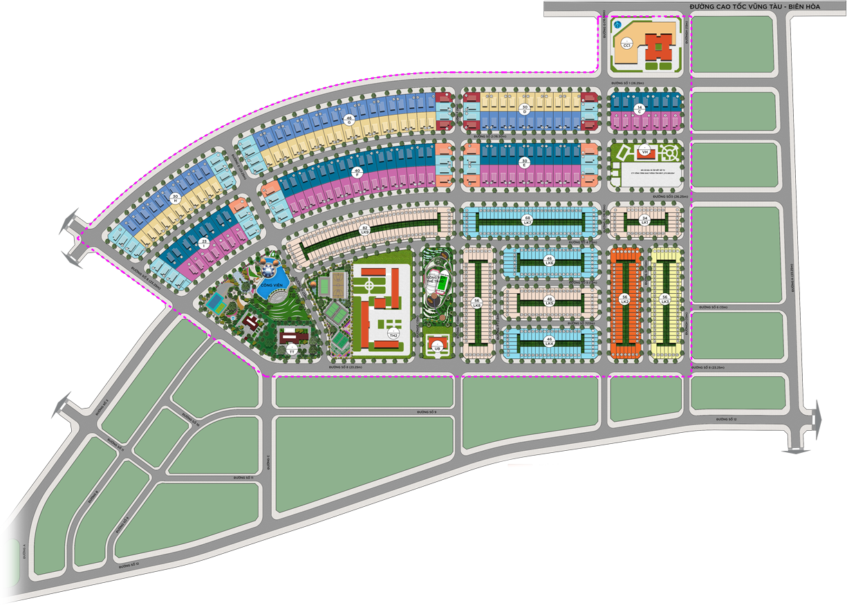 Dự án có tổng diện tích 49 ha, giai đoạn 1 bao gồm 27,2 ha với quy hoạch tổng thể đồng bộ gồm 490 căn liên kế, 213 căn biệt thự, 1 block chung cư cùng hệ thống trường học, bệnh viện, công viên, siêu thị cùng hệ thống vui chơi giải trí và hạ tầng đồng bộ.